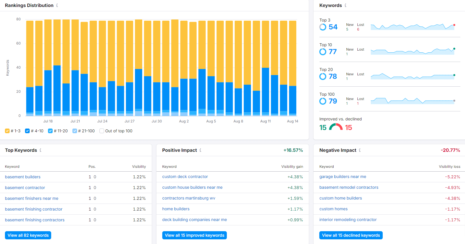 The objective of our SEO campaign, as always, is to drive quality leads. With Miller’s Residential Creations, we’ve achieved this by completely dominating the search results for all of the services they offer. For people in Berkeley, Jefferson and Morgan counties looking for remodeling or custom home building services, Miller’s Residential Creations always shows up – and oftentimes, shows up in the number 1 spot.